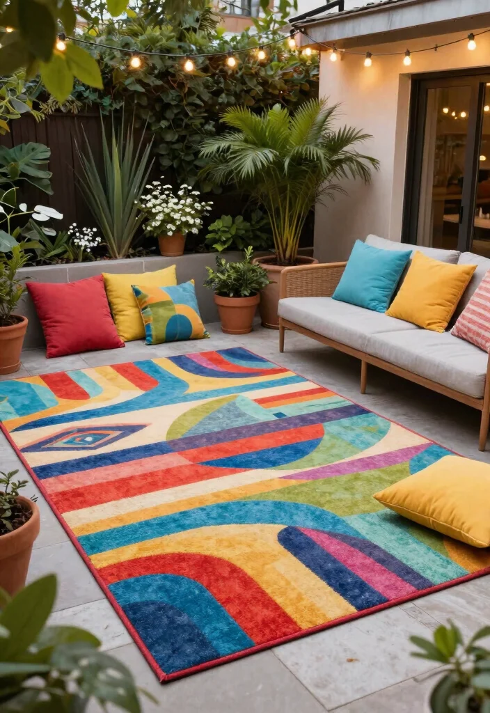 Outdoor-friendly rugs are often made from weather-resistant materials and come in vibrant patterns.