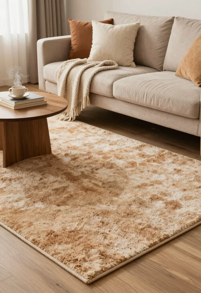 Light-colored shaggy rugs can brighten your space, while darker shades offer sophistication.