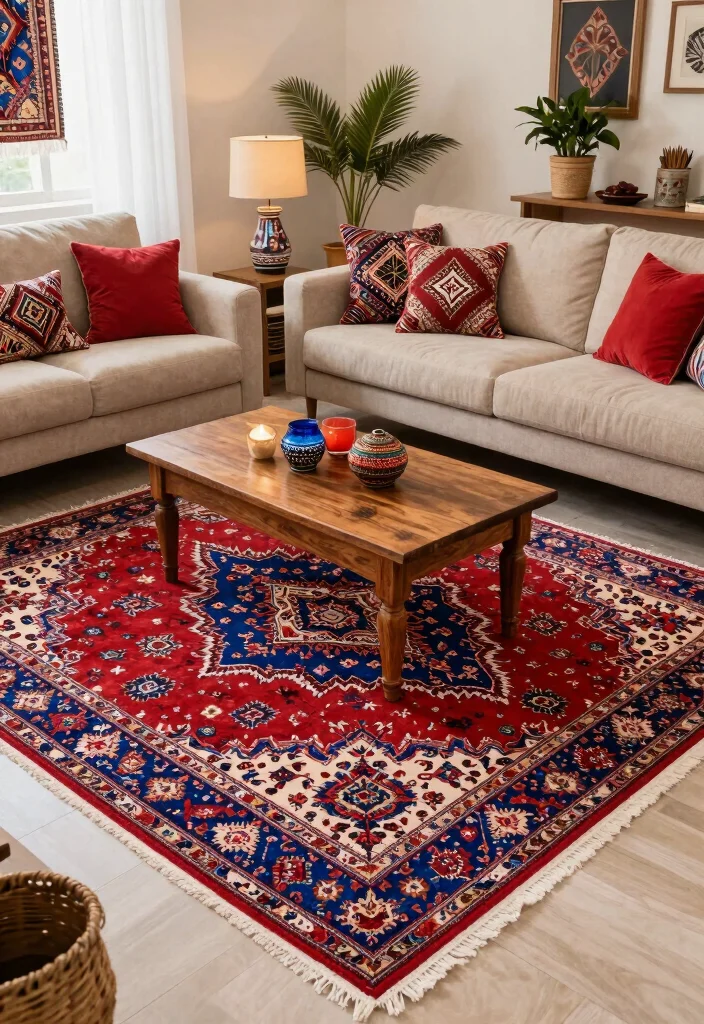 When selecting the perfect Arabian rug for your home, understanding the dimensions and how they fit into your space is key. Bold traditional patterns can transform your decor, but they need the right size to shine. Here’s a practical guide to help you choose the right Arabian rug for each area of your home.