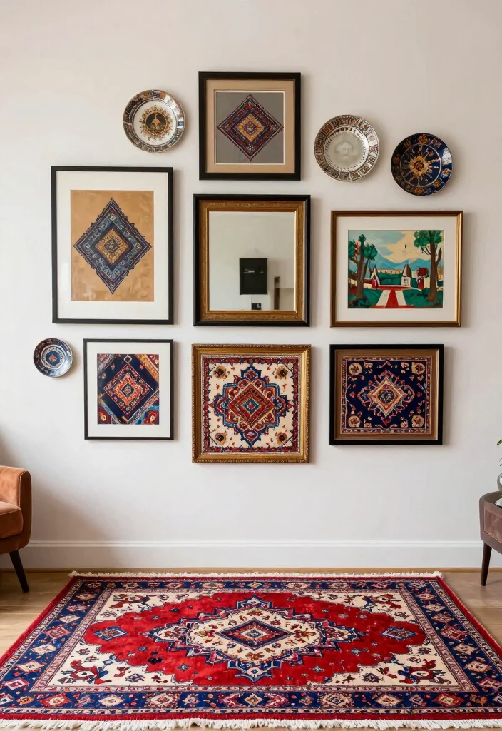 Use an Arabian rug as inspiration to select artwork and decor that enhances your gallery wall’s visual appeal.