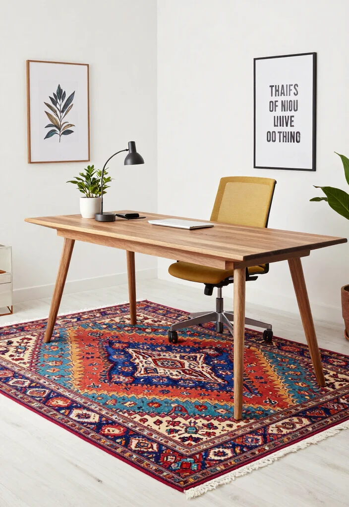 Bring creativity and warmth to your workspace with a stunning Arabian rug that inspires productivity. A colorful, patterned rug can enhance focus while keeping your office stylish and inviting. Position the rug beneath your desk, creating a soft, comfortable surface to support long hours of work.