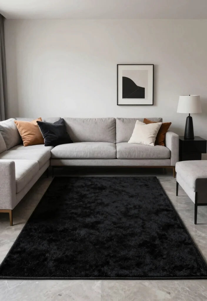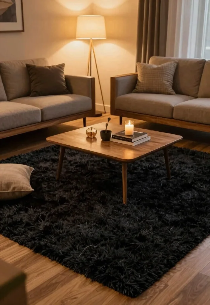 Texture underfoot makes a room feel warmer, right? Plush black area rugs add depth and invite you to unwind; layer with cotton throws for instant coziness—and they fit any budget.