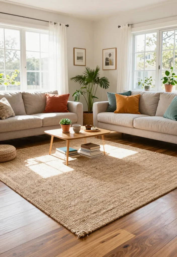 – Pair jute rugs with vibrant throw pillows for a playful contrast.