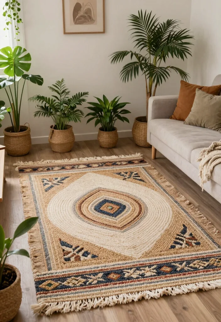 – Pair sustainable rugs with natural wood furniture for a cohesive style.