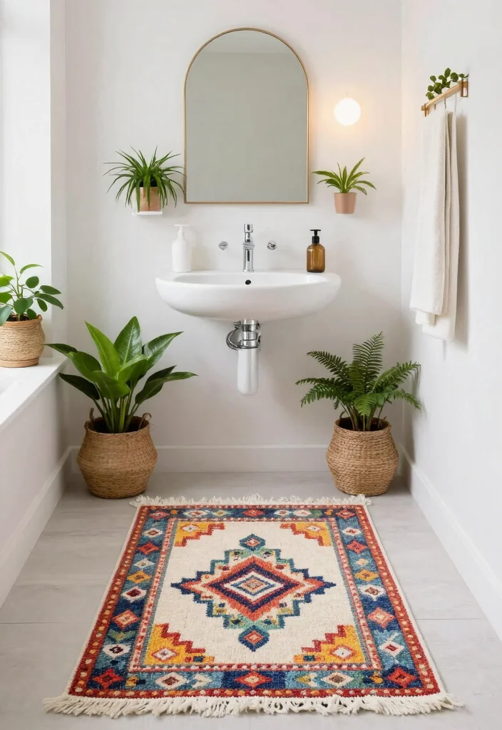 – Place an accent rug in your bathroom for a touch of bohemian luxury.