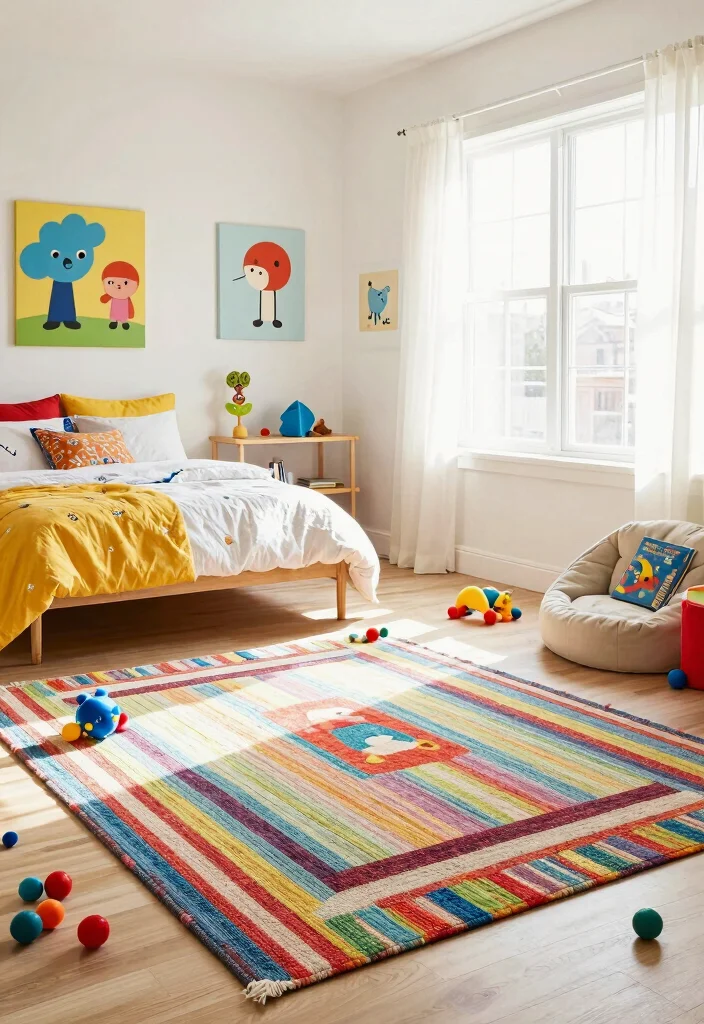 Bright, multi-colored braided rugs spark energy without shouting. They turn playrooms into joyful spaces where kids feel welcome and adults feel inspired. Pro tip: choose durable, easy-to-clean materials to keep the colors vibrant in high-traffic areas.
