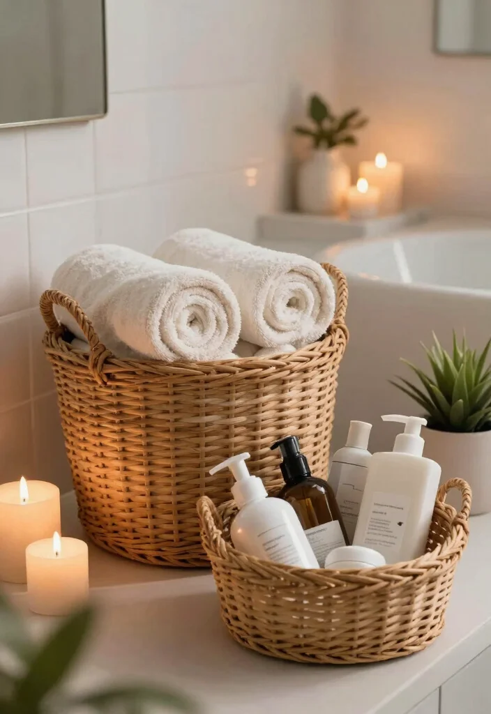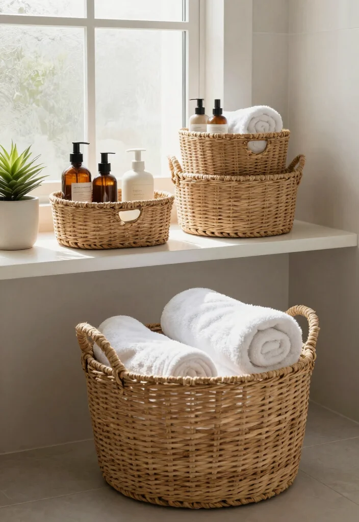 Using cane baskets in your bathroom not only promotes tidiness but also fosters a serene, spa-like environment that feels both functional and pleasing.