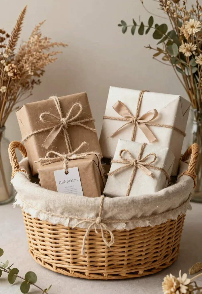 Using baskets for gifts not only stands out but also aligns perfectly with a sustainable lifestyle.