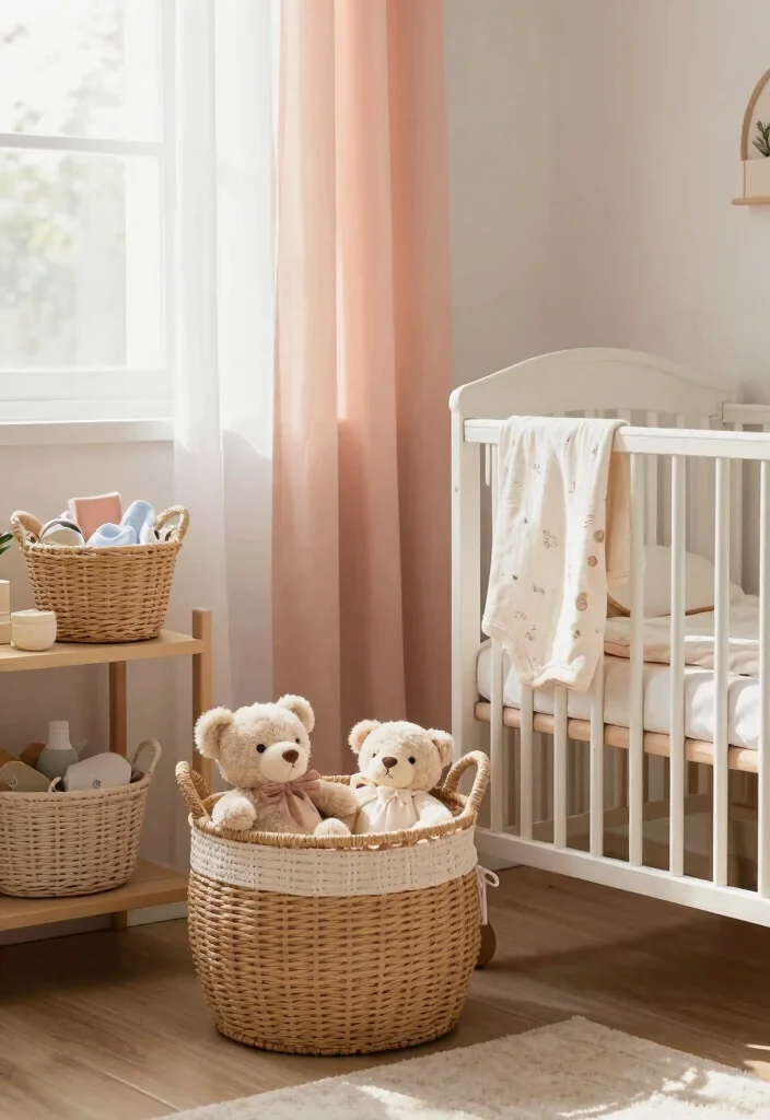 Look for baskets adorned with playful patterns or gentle colors that harmonize with your nursery theme. Here are some thoughtful suggestions: