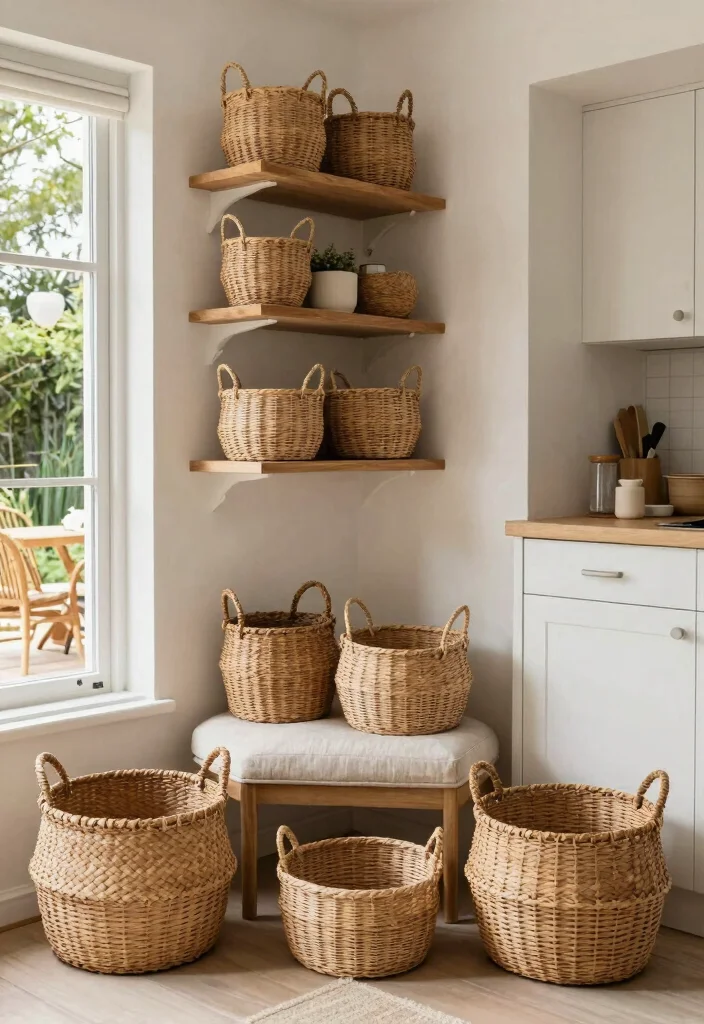 Installing open shelving to display these baskets can further enrich your kitchen decor. Grouping baskets of similar colors or styles creates a beautiful balance between practicality and aesthetics. Here are some effective tips to consider: