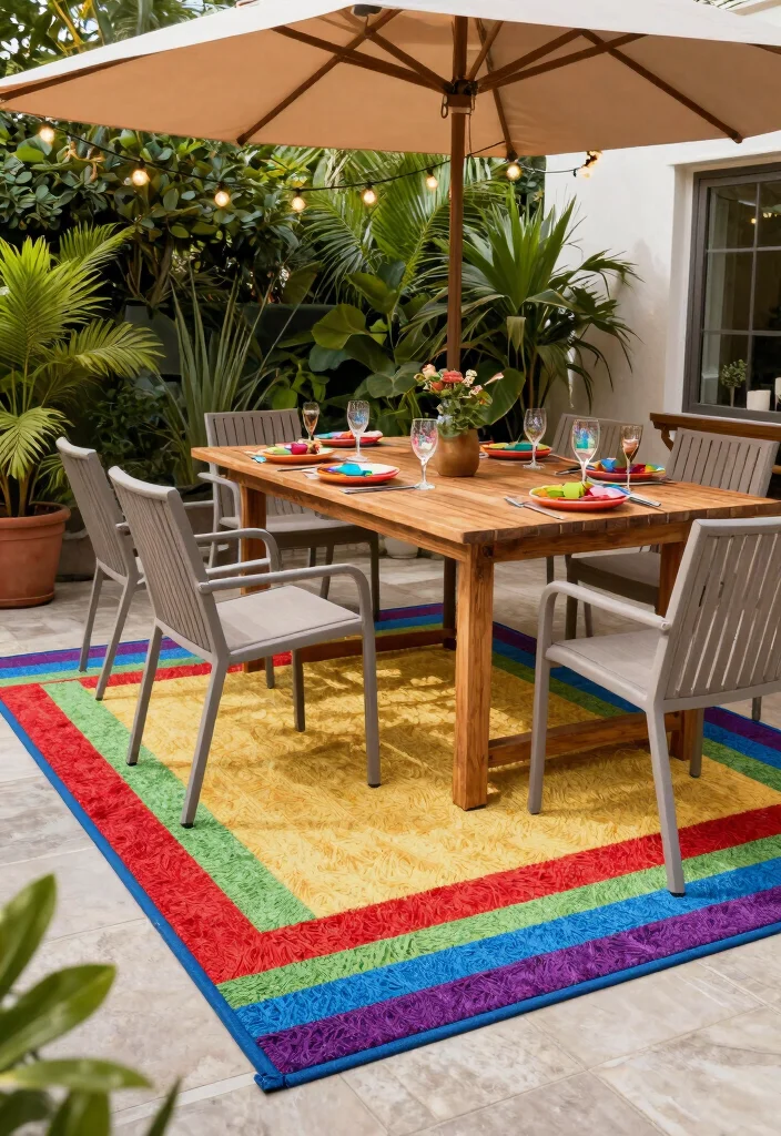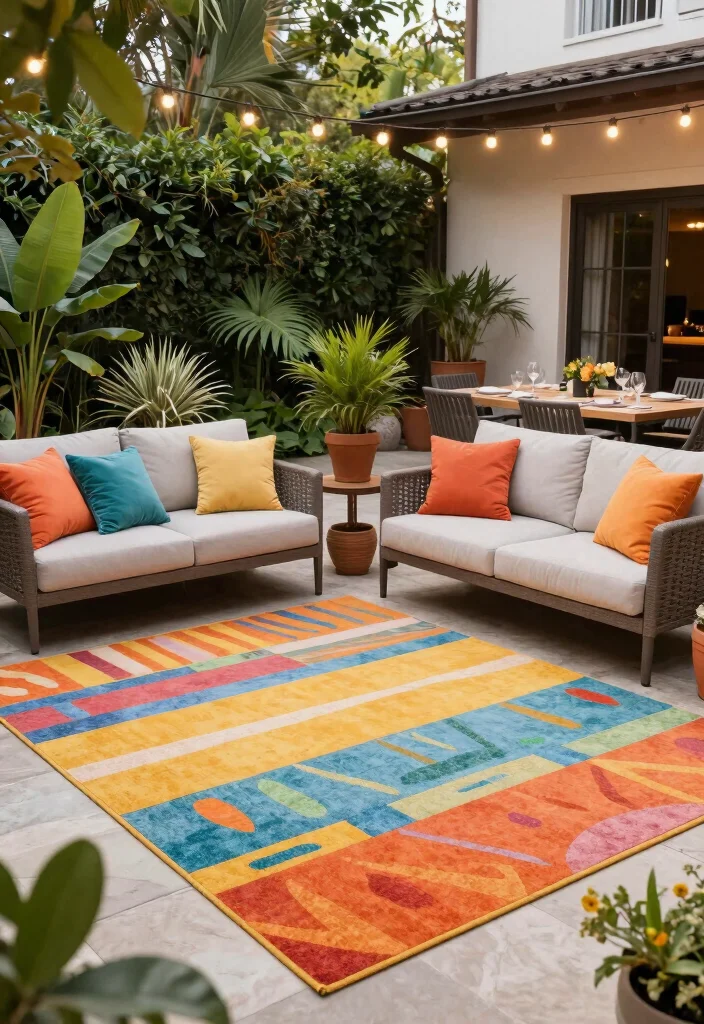 Use durable outdoor rugs on patios to create a cozy atmosphere that’s perfect for entertaining guests.