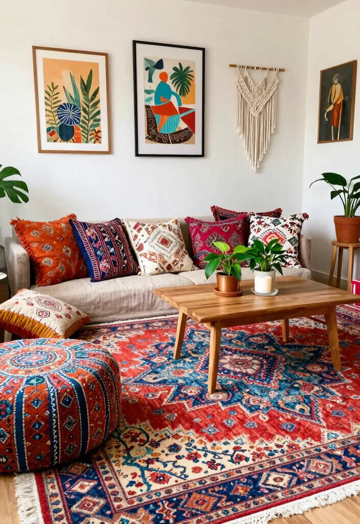 – Incorporate artwork that mirrors the rug’s color palette.