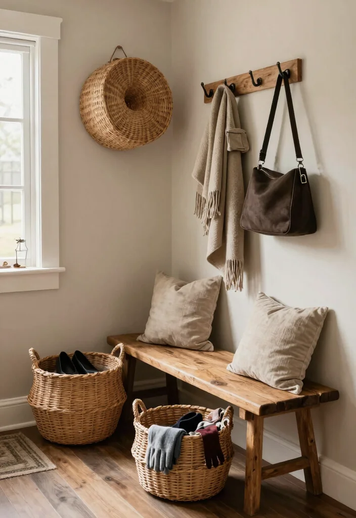 Small spaces shine when you lean into natural textures and vertical storage. Try wall-hung baskets as art or storage, nesting baskets to save floor space, and a rustic wooden shelf to anchor the look. Pair warm fibers with neutral walls to keep the space airy, then mix in decorative baskets ideas that echo the room’s color palette. Use baskets to corral magazines, throws, or bathroom essentials, creating cohesive rustic home accents without clutter. This approach doubles as practical decorative organization tips and a friendly, inviting display that feels curated.