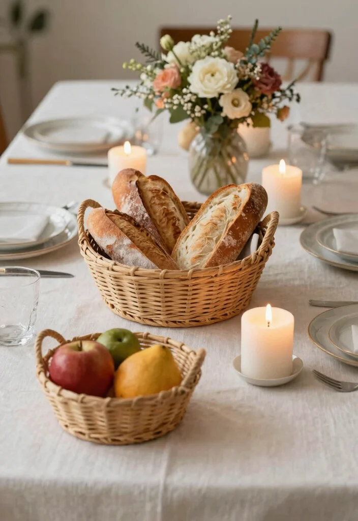 – Choose baskets that complement your dinnerware for a cohesive vibe.