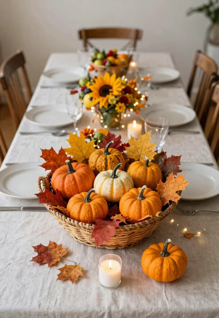 Set the mood by incorporating candles or floral arrangements nestled alongside the baskets. This not only beautifies your table but also makes it functional, creating a warm atmosphere for dining.
