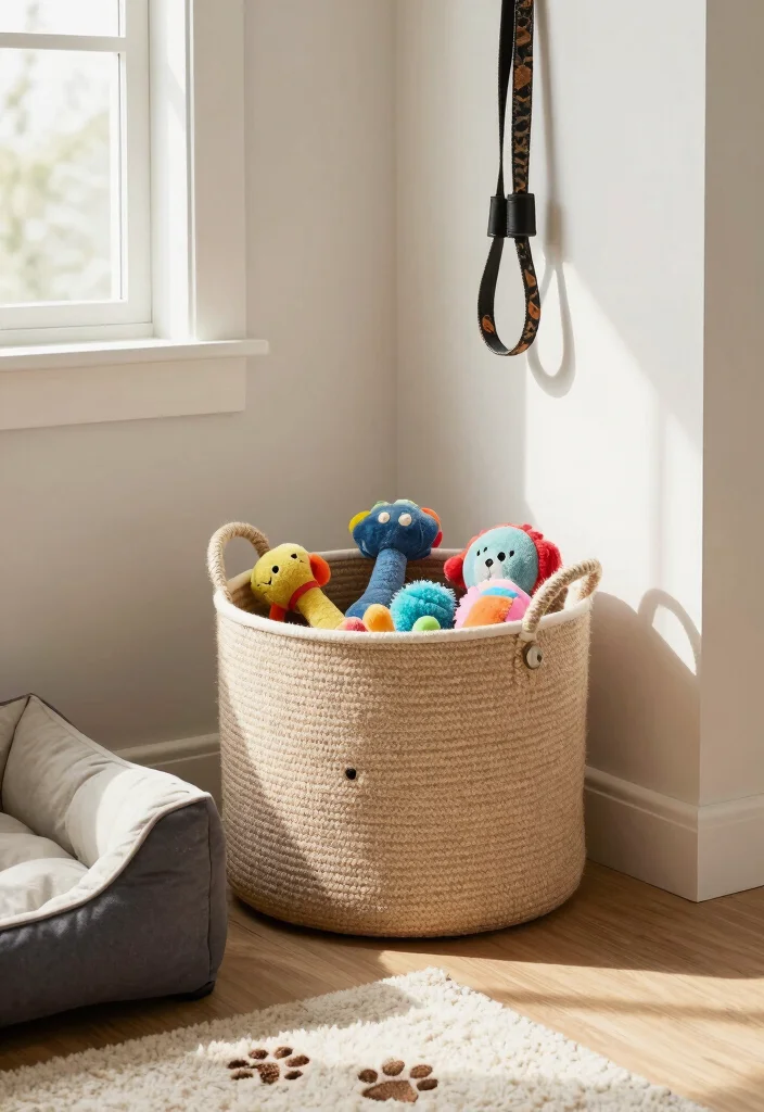 Choose stylish baskets for pet toys to blend functionality with decor, making your space pet-friendly and chic.
