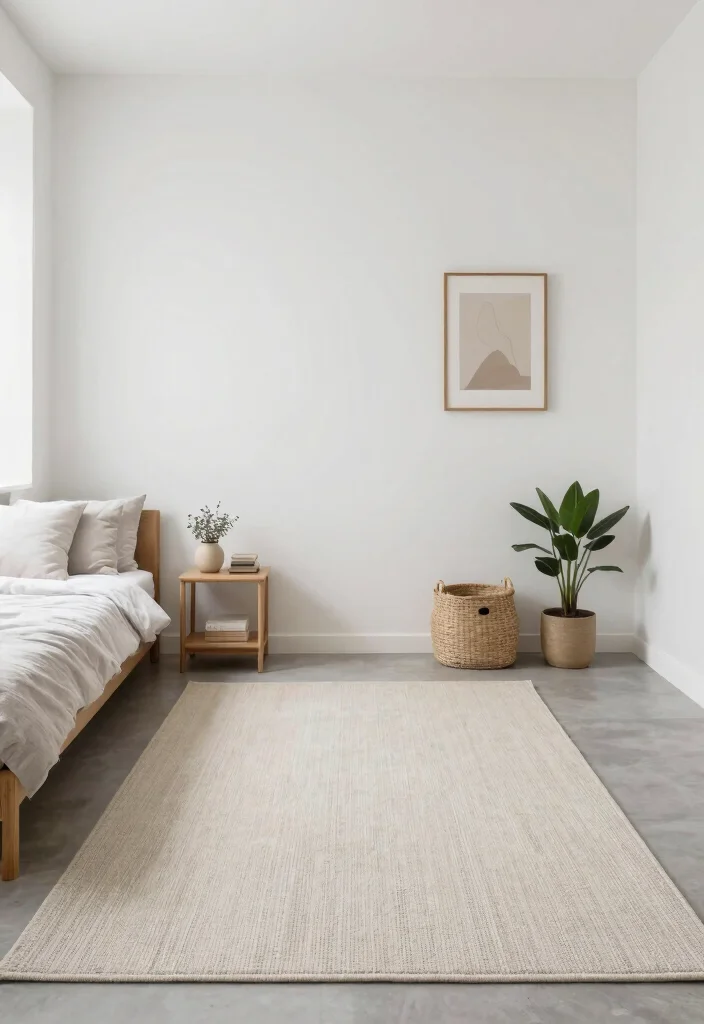Opting for a minimalist rug can streamline your space, creating a calm and organized environment.