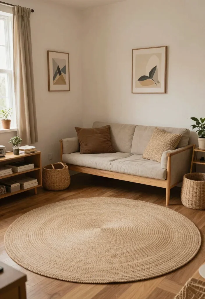 A round rug can create a cozy atmosphere, perfect for unwinding after a long day.