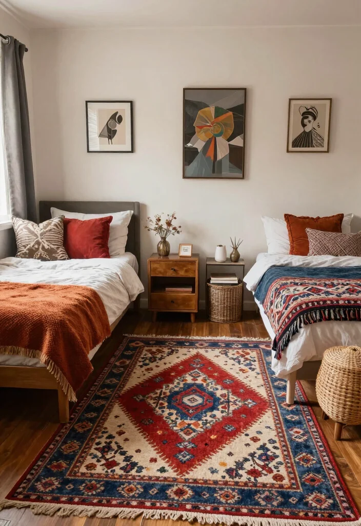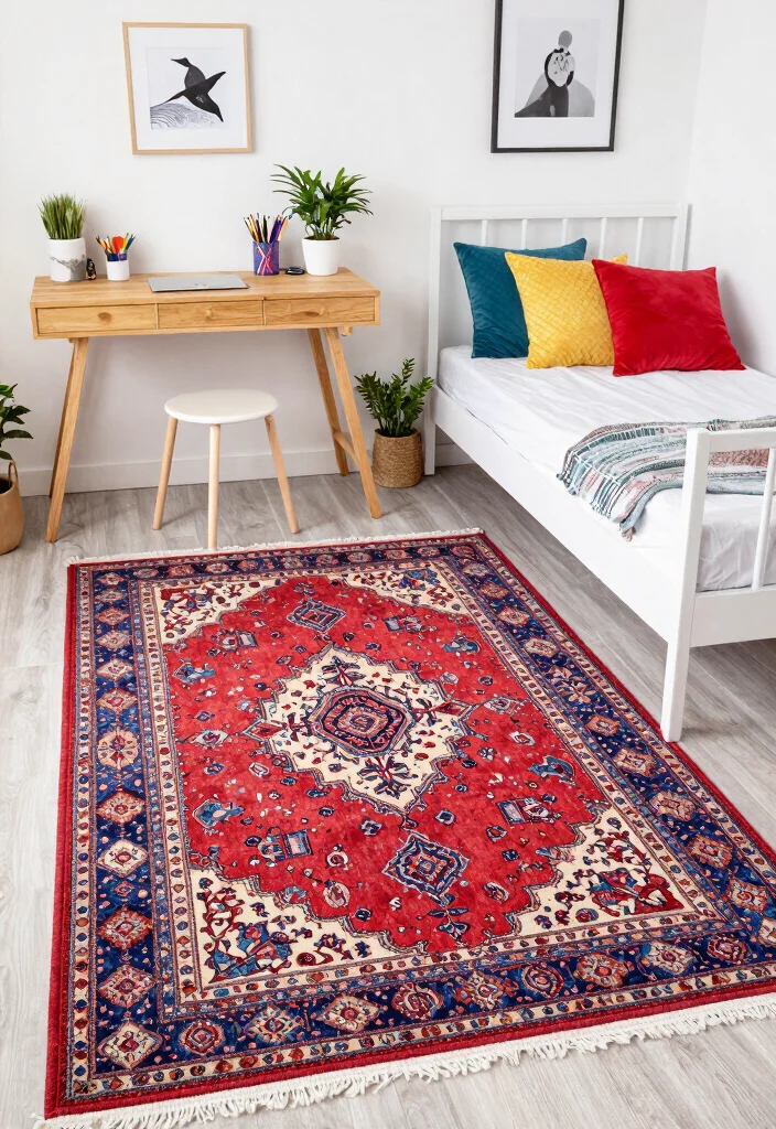 Infuse your dorm with a splash of culture by choosing a colorful Persian-style rug that brings history to life. Known for their intricate designs and vivid color palettes, these rugs can transform any space into a vibrant focal point. With rich hues of reds, blues, and golds, a Persian rug can enhance your decor while serving as a stunning visual anchor. Pair it with simple bedding to let the rug take center stage, or embrace a bold look with complementary colors for a lively ambiance.