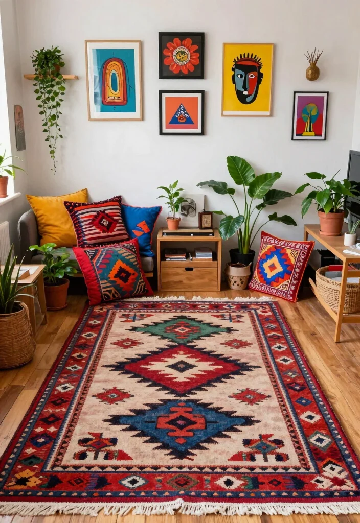 Here are some ideas for styling cultural print rugs: