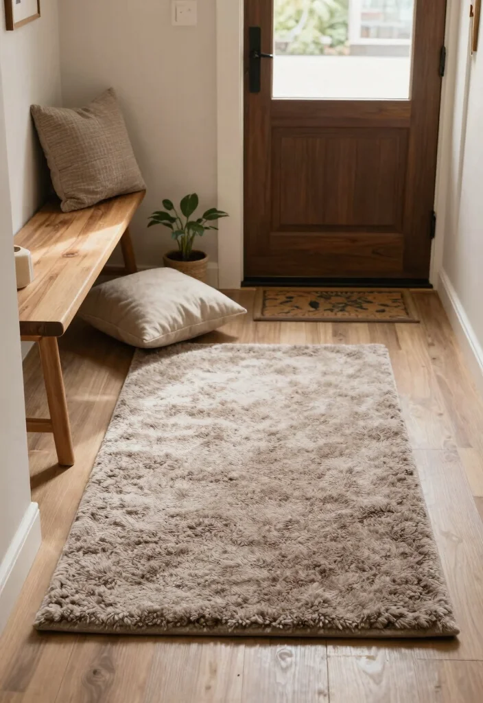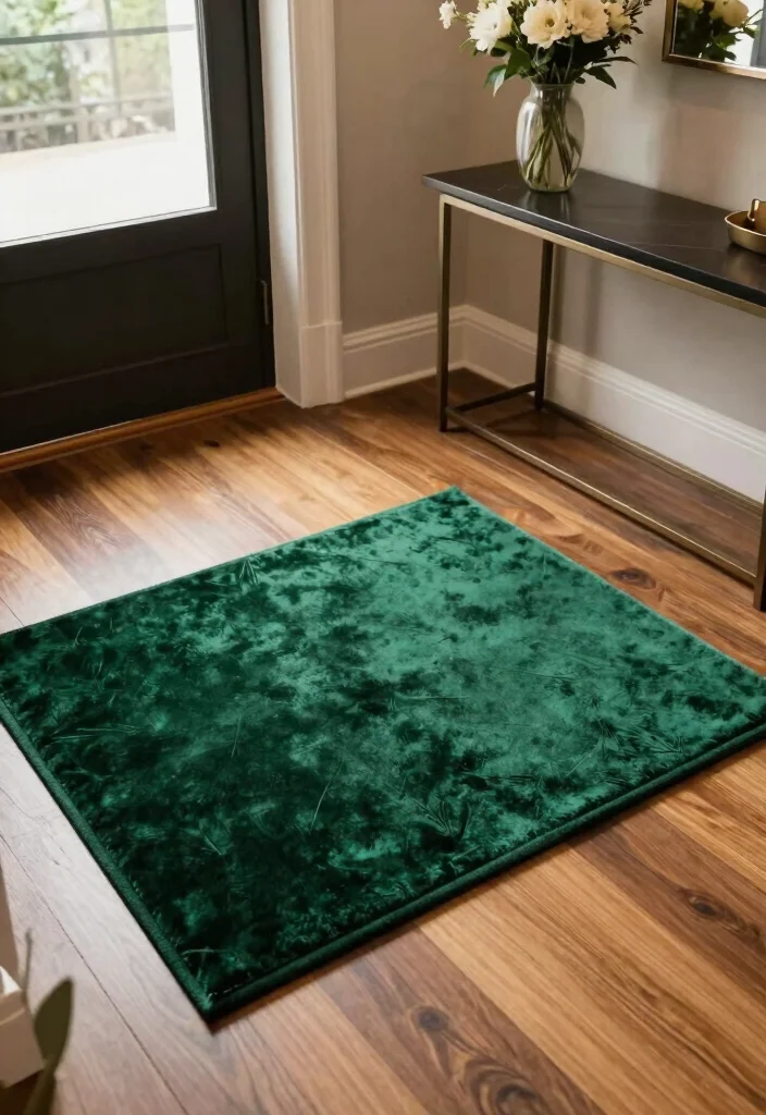 For an ultra-cozy and decadent touch, consider a velvet mat in your entryway. Velvet rugs radiate elegance and warmth, making a stylish statement that invites guests to linger. Ensure the materials are eco-friendly to add a touch of luxury without compromising on sustainability.
