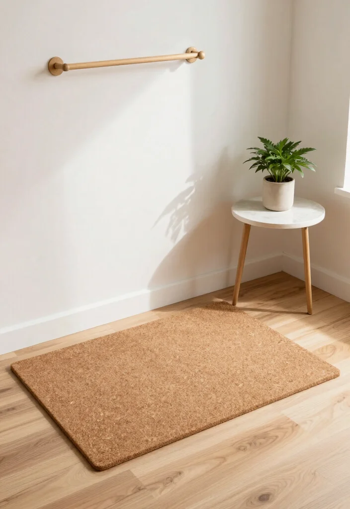 Cork mats are a stylish and eco-friendly addition that offers a clean, modern look. Their natural texture adds warmth to your entryway without overwhelming your decor. Additionally, cork is naturally antimicrobial and resistant to mold, making it a practical choice for high-traffic areas.