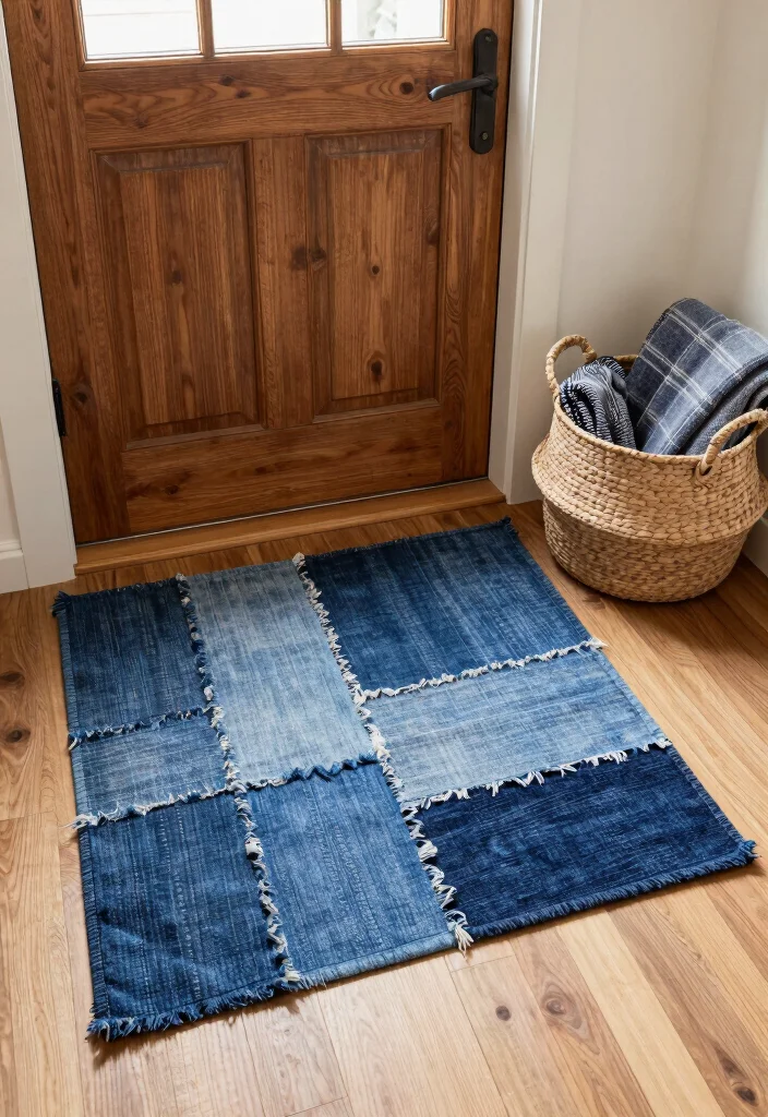 Revamp your entryway with stylish upcycled denim mats! Crafted from repurposed jeans, these mats blend sustainability with a casual, relaxed aesthetic that suits family-friendly homes perfectly. The softness of denim creates a cozy welcome for guests.