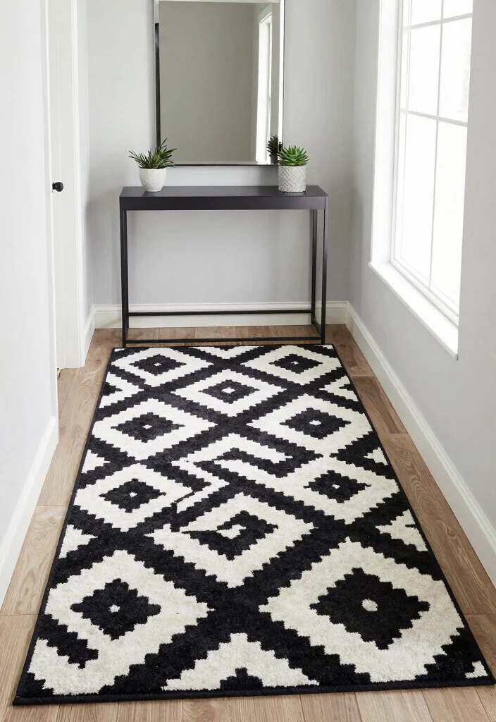 Add a bold statement to your entryway with geometric print rugs! These eye-catching designs offer a modern flair, perfect for contemporary homes. Available in a wide range of colors, these rugs can easily complement your existing decor while providing a comfortable landing space for guests.