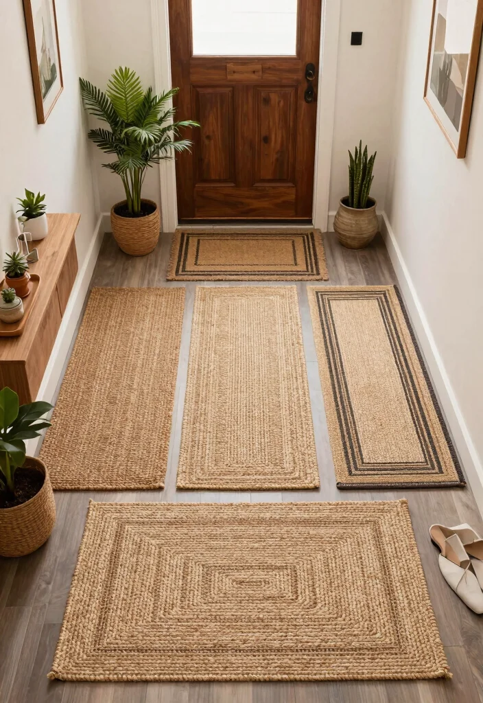 – Explore varying styles of indoor rugs for entryways, from rustic jute to elegant wool, to suit your home’s aesthetic.