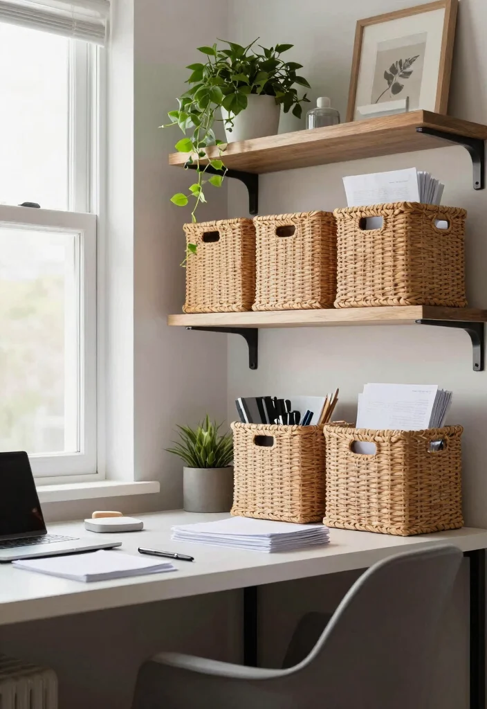 Fun fact: using hand woven baskets can boost home office desk organization by up to 40%—and creativity follows. Keep office supplies, documents, and plants within reach, and watch your productivity rise as clutter falls.