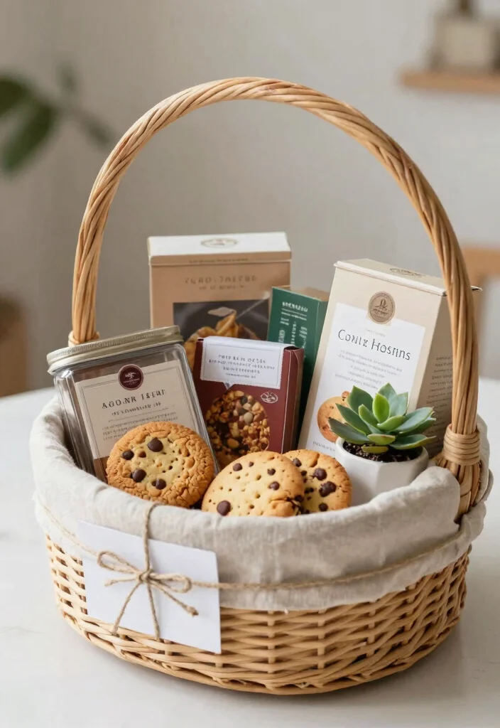 Fill the basket with thoughtful items, whether homemade treats or special goodies, to make it even more special. You can find stunning baskets at local shops or artisan markets for a unique presentation.