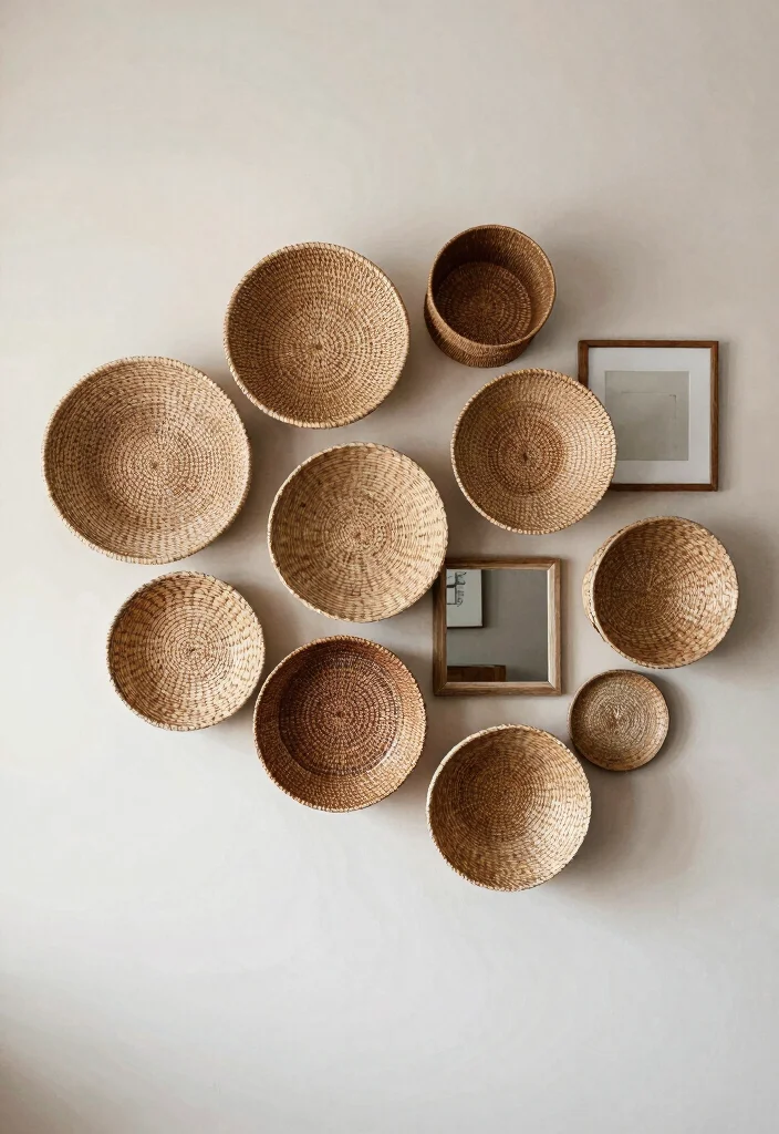 Baskets can transition from mere storage solutions to beautiful wall art that adds depth and texture to your space. Imagine a stunning feature wall adorned with various sizes and shapes of hand woven baskets, creating an inviting atmosphere. This trending decor choice enhances the visual interest of any room without overwhelming it.