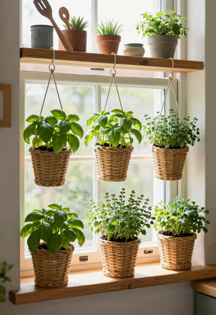 This charming setup not only beautifies your kitchen but also ensures you always have fresh ingredients on hand.