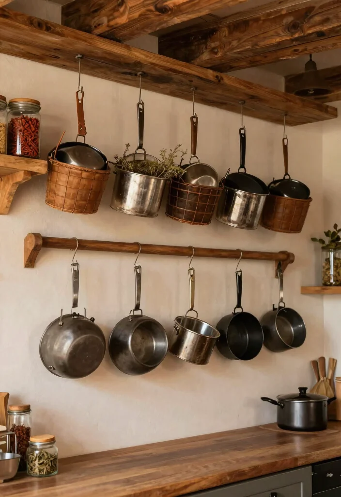 – Utilize rustic pot pan organizers to keep cookware in check and simplify cooking prep.