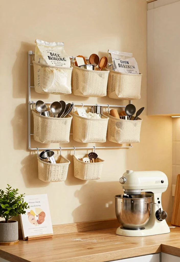 By placing hanging baskets near your mixer, you can streamline your baking process and keep everything organized. This method not only enhances efficiency but also brings a chic vibe to your kitchen.