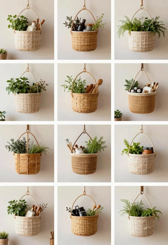 Organizing kitchen utensils is essential, especially in smaller spaces. Hanging baskets offer a vertical storage solution that keeps your essentials easily accessible while freeing up counter space. Imagine a series of baskets on your wall, showcasing your favorite tools while adding a modern touch to your kitchen.