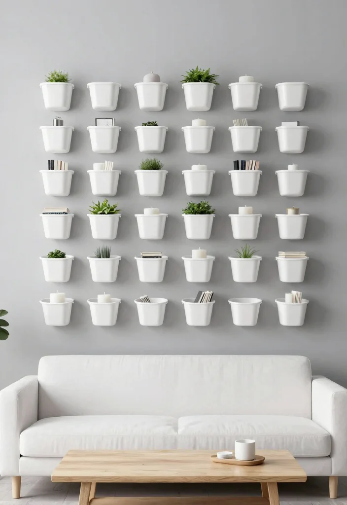 Stick to a limited color palette, incorporating shades like white, grey, and beige for a serene vibe. Use baskets to store small items like plant pots or books, and arrange them in a grid format for a refined appearance that exudes modern elegance.