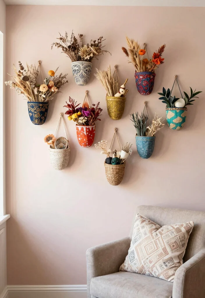 Enhance your decor by using hanging wall baskets as artistic displays. Fill them with decorative items, dried flowers, or seasonal decor to create a unique focal point in any room that reflects your personal style.
