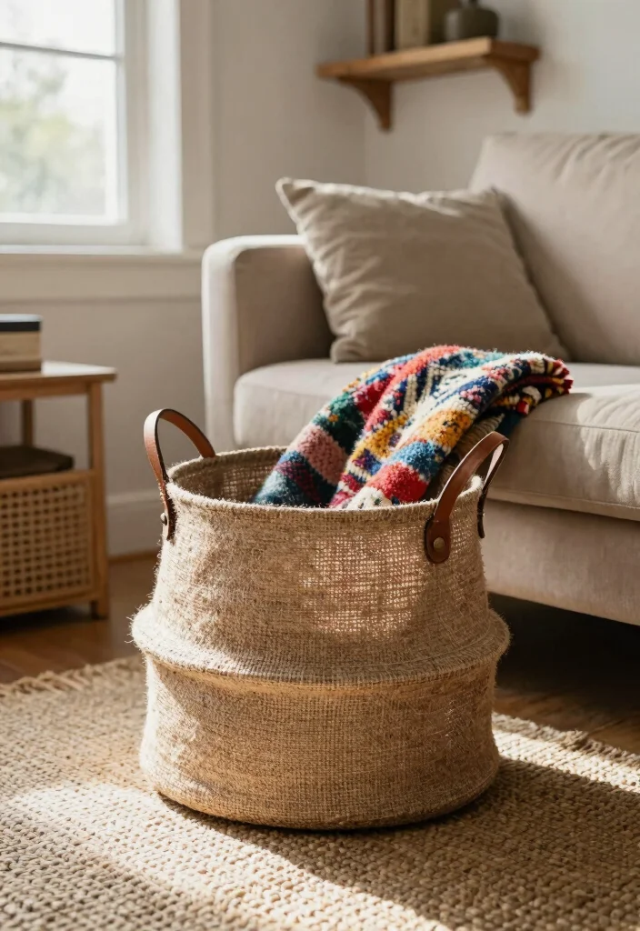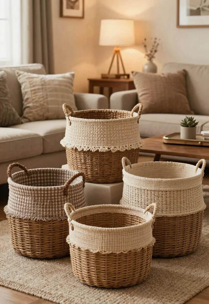 What are the best types of home decor baskets for a cozy, eco-friendly living room?