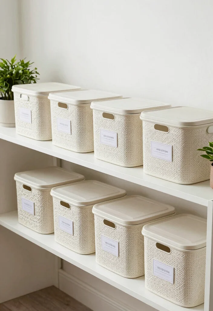Minimalist baskets provide a sophisticated touch while remaining functional, perfect for stylish organization.