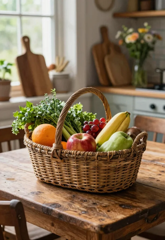 To make the most of this stylish addition, consider filling it with fresh produce, kitchen linens, or even using it as a centerpiece on your dining table. Pairing it with fresh flowers or rustic kitchen tools can enhance its homey feel, making it a delightful focal point. You might also consider distressing the basket further with paint to achieve a more vintage look.