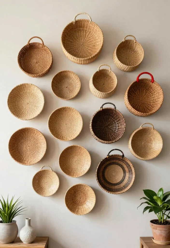 Using decorative baskets as wall art infuses your home with warmth and personality while being environmentally friendly.