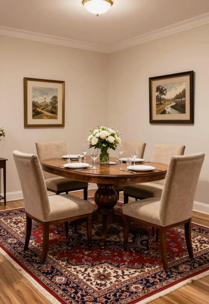 – Use table runners that echo the rug’s patterns for cohesion.