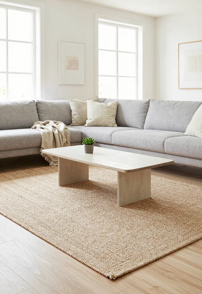 Choose minimalist jute rugs in neutral tones to create a calm and inviting atmosphere in any room.