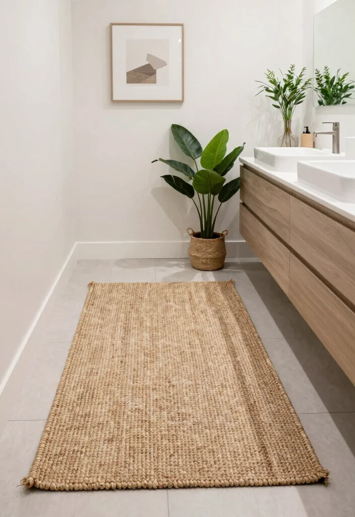Fun fact: Moisture-resistant jute rugs can handle 2–3 daily splashes and still dry within 1–2 hours, turning your bathroom into a warm, spa-like retreat. It stays cozy, stylish, and easy to clean.