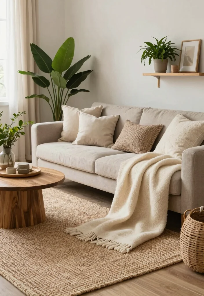 – Change accessories like throw pillows seasonally while keeping the jute rug.