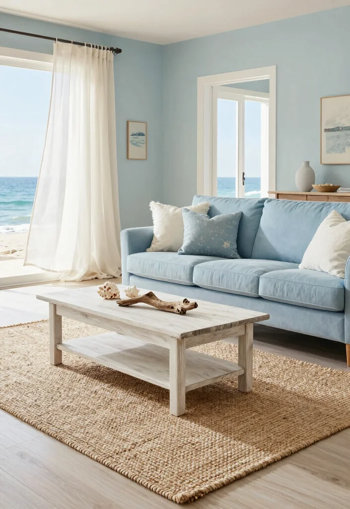 Did you know that jute rugs use 2-3 times less energy to manufacture than synthetic fibers? Their natural fibers pair with soft blues and whites for an airy coastal vibe you can refresh seasonally.