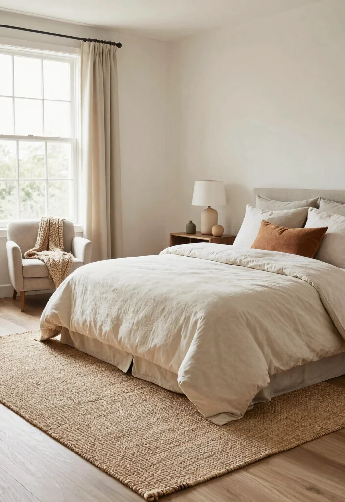 For sourcing, look for soft jute options available at home goods stores that cater to bedroom aesthetics. This choice aligns with the trend of creating serene and tranquil spaces for relaxation.