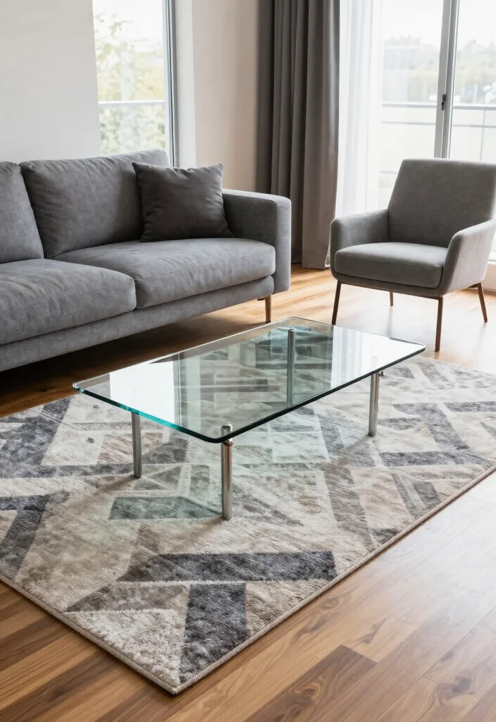 Geometric or minimalist patterns help maintain minimalist home decor while anchoring open spaces.