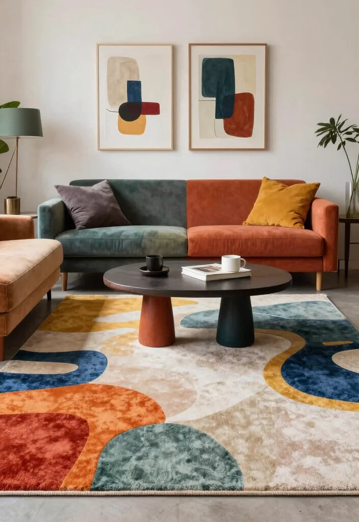 Incorporate an abstract rug by: